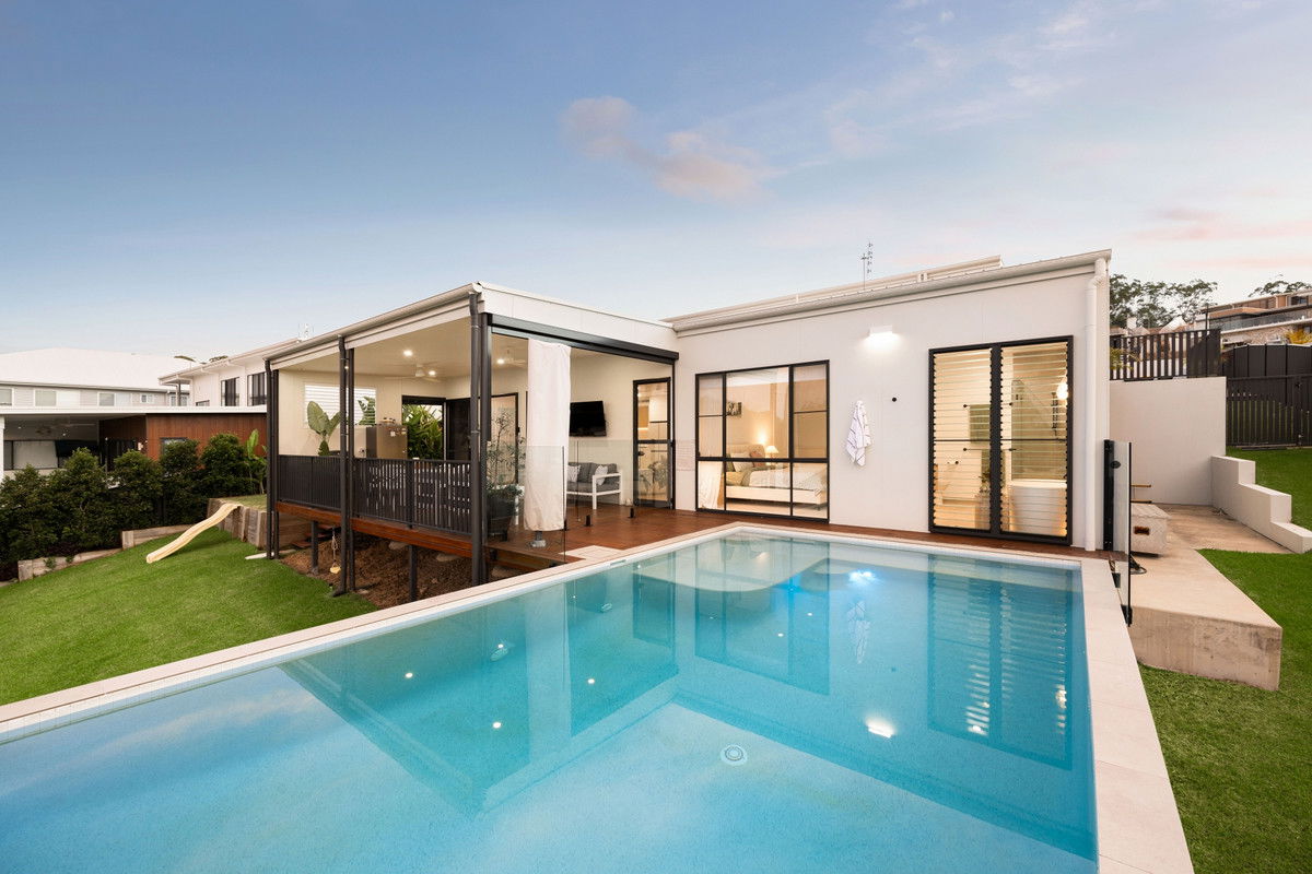 The large decking area overlooks the stunning private yard and the Euro-style 7m x 4m pool, where you can enjoy drinks by the water or take a dip while soaking in the beautiful views of the surrounding landscape. The pool, with its elegant, curved feature step, is perfect for both relaxation and entertaining, offering the ideal spot for family fun or hosting guests in style.