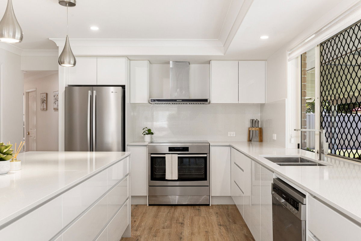 The open-plan kitchen sits at the heart of the home, perfectly suited to both busy mornings and relaxed afternoons. Thoughtfully designed with an abundance of storage and clear views to the backyard, the kitchen connects effortlessly to the separate dining area and main lounge. An additional living zone offers valuable flexibility for families seeking extra space or privacy. While a conveniently located study nook near the kitchen makes schoolwork, study or home administration a seamless part of everyday life.