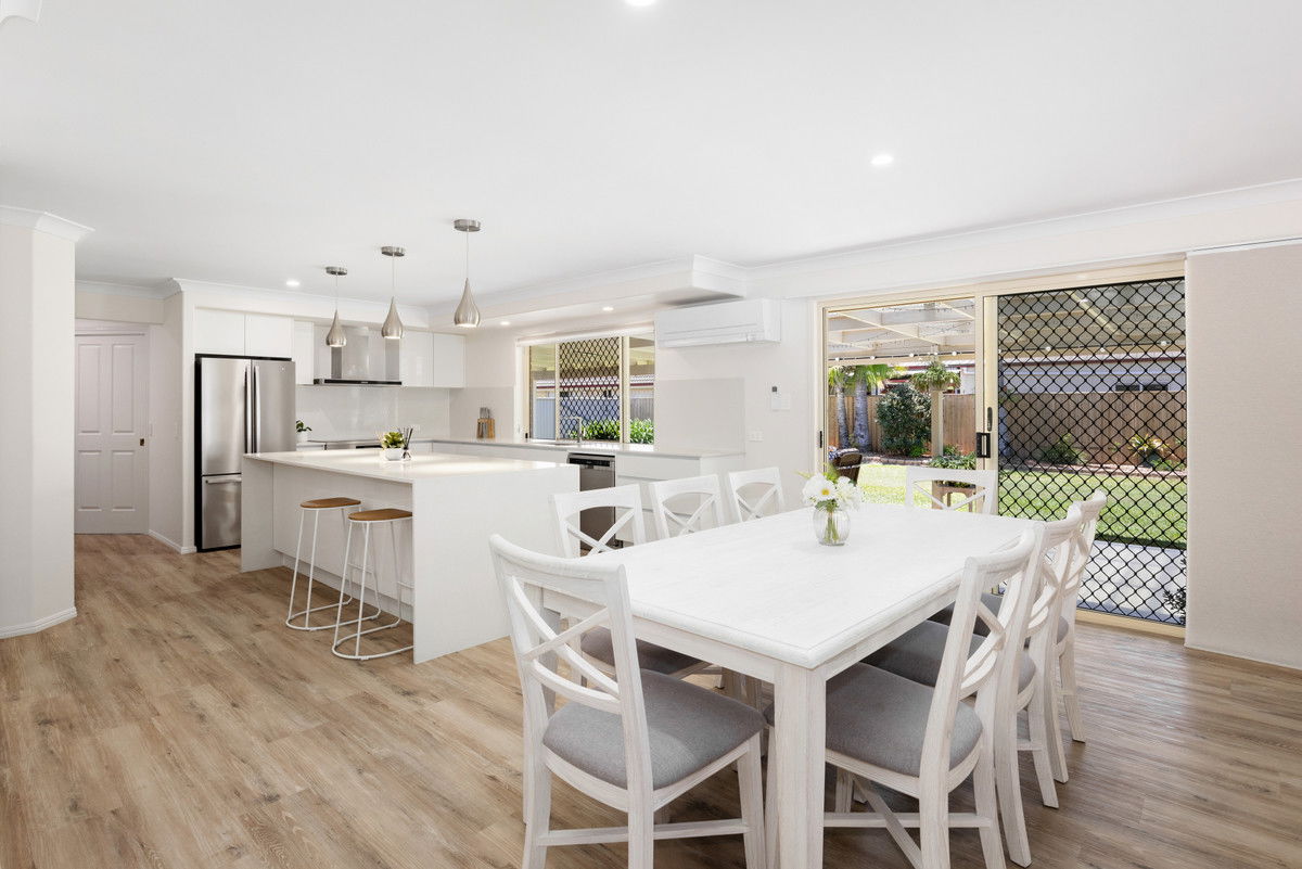 All bedrooms are well proportioned and fitted with ceiling fans and built-in wardrobes. The spacious master suite is a true retreat, complete with a large wardrobe and private ensuite. Fresh flooring throughout enhances the sense of space, while air conditioning in the main living areas and master suite ensures year-round comfort.