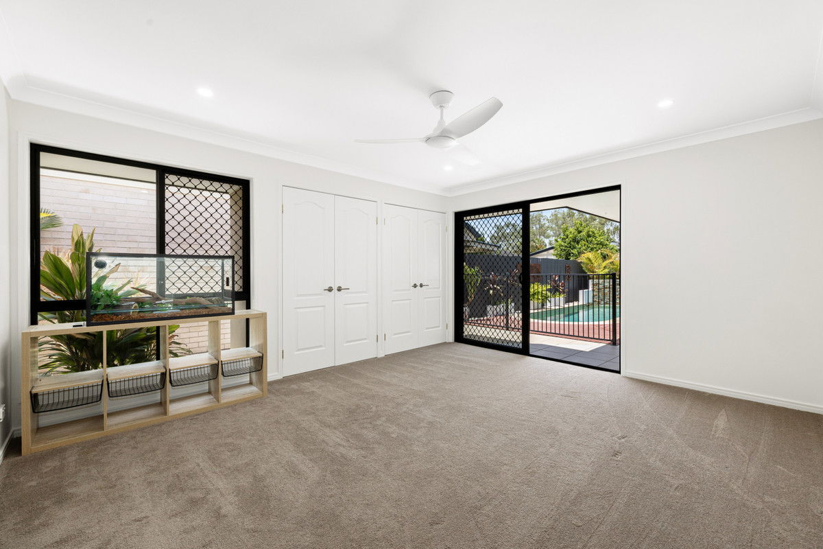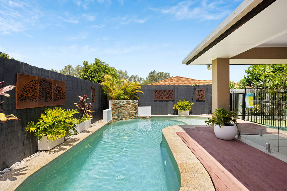 A true highlight of the home is the outdoor space, capturing the essence of Sunshine Coast living. It features a large inground pool with a corner waterfall feature, generous lawn areas for children and pets, along with the added benefit of solar power for energy efficiency and peace of mind.