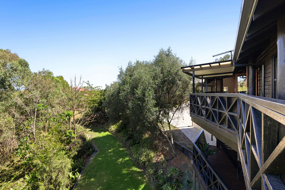 Elevated above its lush surroundings, the home captures cooling breezes, abundant natural light and peaceful leafy outlooks from every level. Expansive hardwood decks crafted from merbau and spotted gum extend the living spaces outdoors, creating multiple areas to relax, entertain and fully embrace the calm natural setting.