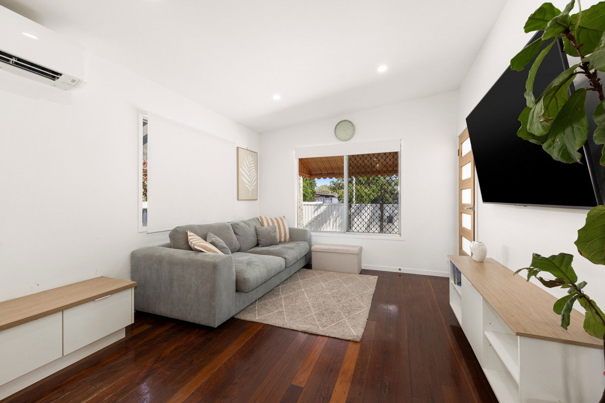 The home boasts two generously sized bedrooms and a stylishly renovated bathroom, featuring floating cabinetry, a niche, and a luxurious double shower head. The split-system air conditioning ensures year-round comfort, while the large rear covered deck provides the perfect space to unwind and take in the peaceful backyard views.